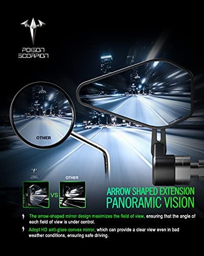 Sponsored Ad - Motorcycle Bar End Mirrors, 7/8 Handlebar Rear View Accessories Universal Standard Hollow Arrow CNC Black fit for Motorbike Street Sport Bike Touring Cruiser Chopper Cafe Racer