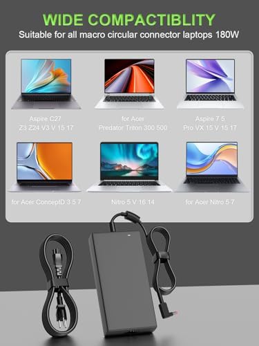 180W Charger Compatible with Acer Nitro 5 7 V15 V17 V16 V14 16S AN515 AN517 Predator Helios/Triton300 500 Aspire 3D 7 Series G3-573 PH315-52 PH317-54 PT515-51 Laptop