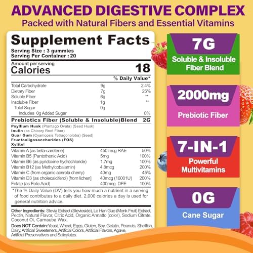 Sponsored Ad - Fiber Gummies for Adults with Psyllium Husk, 7G(Soluble + Insoluble) Daily Prebiotic Fiber with Inulin, FOS, Guar Gum, Multivitamins for Daily Digestive Health, Regularity Support,Sugar