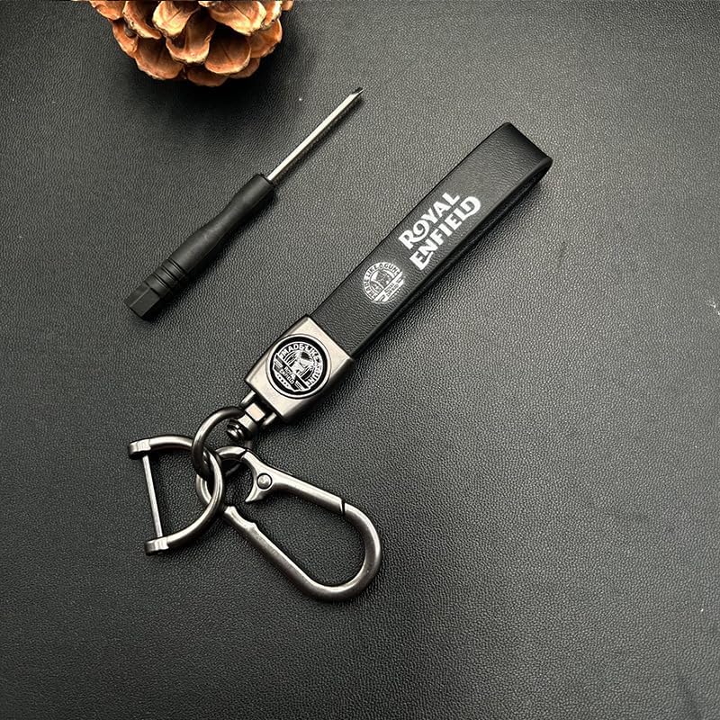 Premium Leather & Metal Keychain And Keyring Compatible With Royal Enfield (Black)