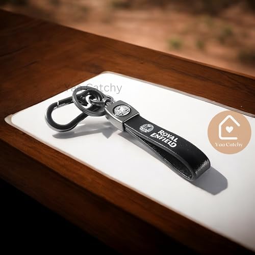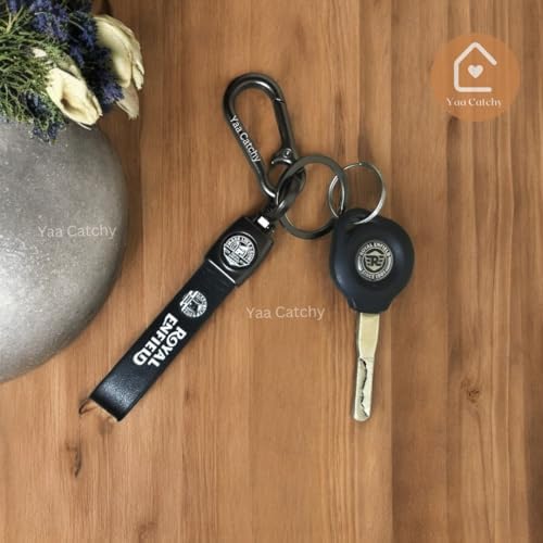 Yaa Catchy Premium Leather & Metal Keychain And Keyring Compatible With Royal Enfield (Black)