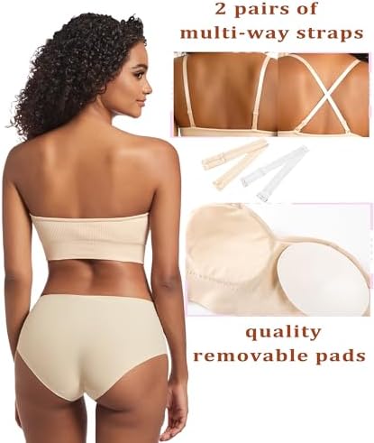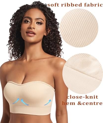 Sponsored Ad - PRETTYWELL Strapless Bra for Women Ribbed Seamless Non-Slip Comfort Padded Wireless Bandeau Bras Wireless Tube Top Bra