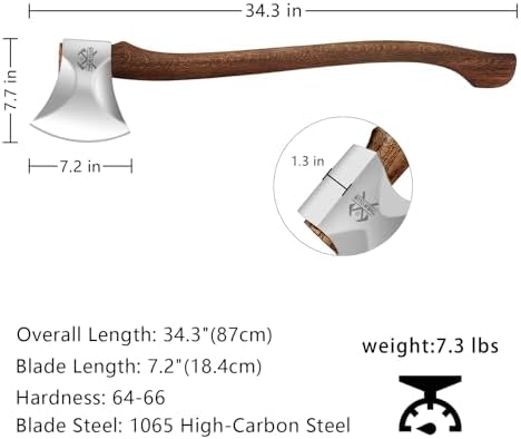 34.3 Inch Professional Wood Splitting Axe, Wood Chopping Axe with Leather Sheath, Standing Ax, Tree Felling Ax, Springboard Ax, Sporting Axse, Racing Axes for Timbersports - Head 5.5lbs