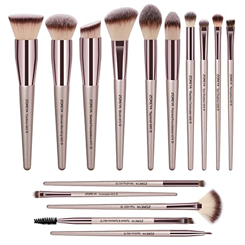 ZOREYA Makeup Brushes, 15 Pcs Professional Premium Synthetic Brush Set, Foundation Concealer Eyeshadow Blush Makeup Brush Set (Champagne Gold)
