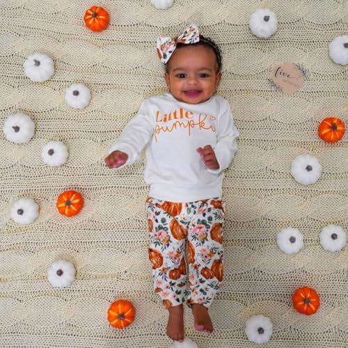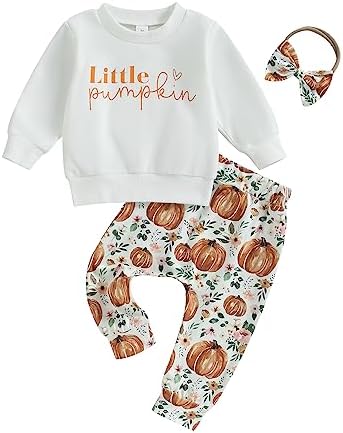 Baby Girl Winter Clothes Pumpkin Crewneck Sweatshirts Flower Sweatpants Headband Toddler Fall Halloween Outfits