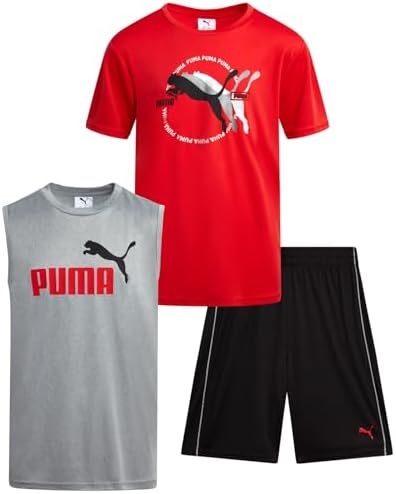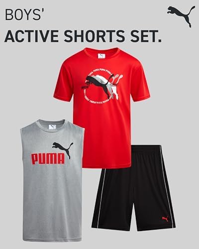 Boys Active Shorts Set - 3 Piece Performance T-Shirt, Dry Fit Tank Top, and Gym Shorts - Activewear Set for Boys (4-16)