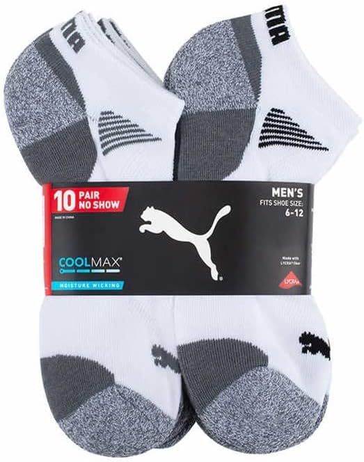 Mens No Show Socks, White 10 Pair, 13-15, (PUMA-12345-WHT-13-15)