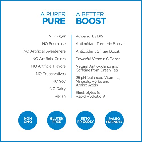 Pureboost Clean Energy Booster, Refreshing Energy Drink Mix with B12 Vitamins, Electrolytes, Antioxidants, Sugar-Free with No Sucralose (Combo Pack, 30 Count)