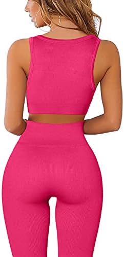 Sponsored Ad - QINSEN Workout Outfits for Women 2 Piece Ribbed Seamless Crop Tank High Waist Yoga Leggings Sets