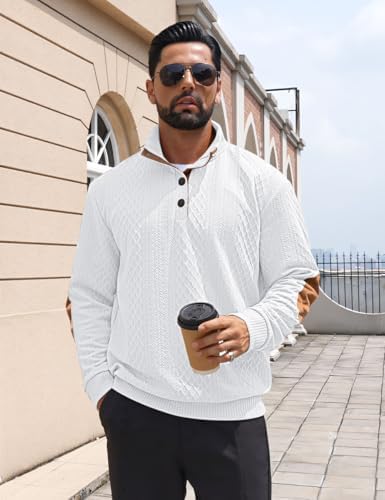 Sponsored Ad - Men's Casual Sweatshirt Pullover Sweater Casual Long Sleeve Stand Collar Quarter Button Sweaters