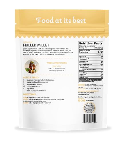 Quay Naturals Organic Hulled Millet, 2.5 lbs, USA Grown, Non-GMO, Gluten-Free, Whole Grain, Easy to Digest, Vegan-Friendly