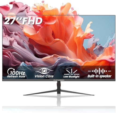 Sponsored Ad - 27 inch Gaming Monitor 100Hz Computer Monitor Built-in Speakers Full HD 1920 x 1080P with HDMI DP Interface Eye Care Frameless with 3-Side Virtually Borderless Design VESA(100 x 100mm)
