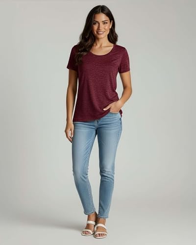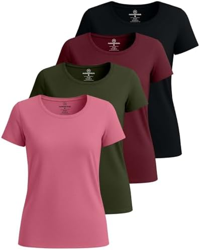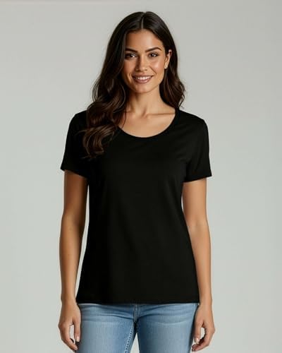 Sponsored Ad - 4 Pack: Women's Cotton Short Sleeve T-Shirt - Casual Scoop Crew Neck Tops Tee (Available in Plus Size)