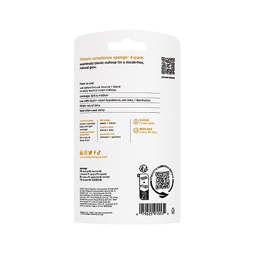 Sponsored Ad - Miracle Complexion Makeup Sponge, 4-Pack Beauty Blender For Liquid & Cream Foundation, Streak-Free Coverage, Latex-Free, Vegan & Cruelty-Free