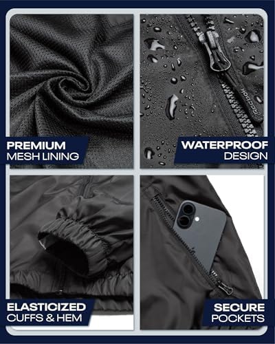 Womens Windbreaker Jacket - Lightweight Water and Wind Resistant Outdoor Hooded Rain Coat for Running (Sizes: S-XL)