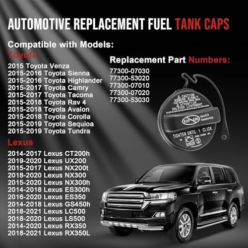 Gas Cap Fuel Cap 77300-07030 for 2014-2021 Toyota Venza Highlander Sienna Tacoma Camry RAV4 Corolla Avalon Tundra Sequioa,Lexus CT200h UX200 ES300h ES350 GS450h NX300h RX350 LC500,77300-53030 Gas Caps