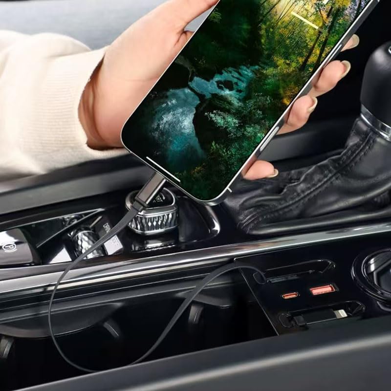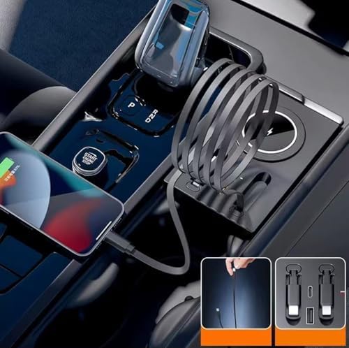 USB Hub Wireless Charger for Volvo xc60 xc90 s90 v90 s60 v60, Retractable Hub Docking Station with Fast Charging Cable Multi Port, Accessories Docking Station of Center Console (tuozhanwu-A)