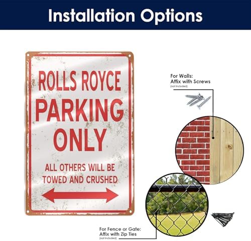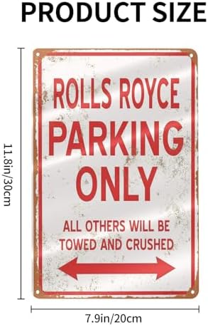 CAIRUO Rolls Royce Parking ONLY Vintage Look 8x12 Inches Metal Tin Sign Retro - Wall Decor Plaque Poster