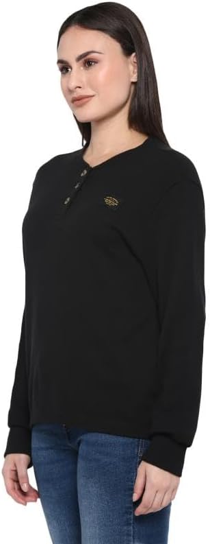 Branded Waffle Henley Women's T-Shirt 100% Cotton Long Sleeve Tee with Button Round Neck Summer Shirt for Women