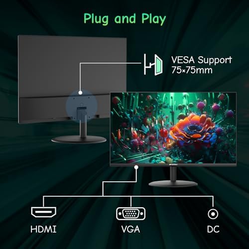Sponsored Ad - Computer Monitor 24 inch Eye Care 1080P Display HDMI,VGA Ports with 178° Viewing Angle/Frame-Less/Tilt/VESA Compatible for Office and Home