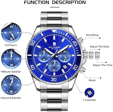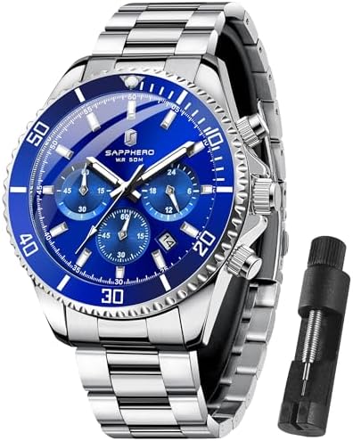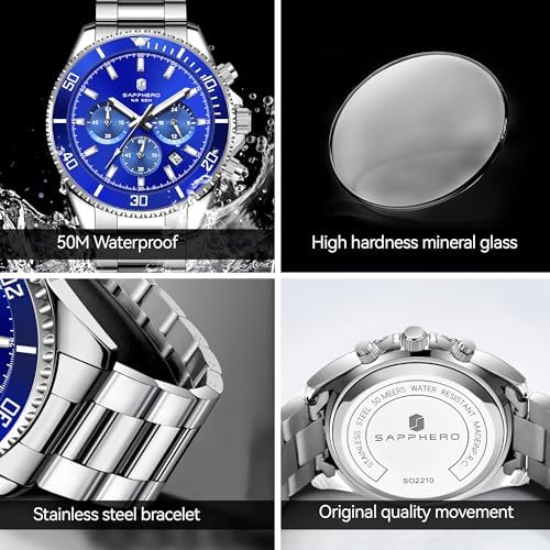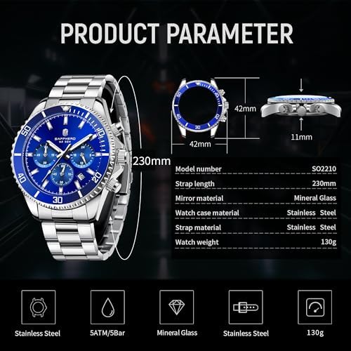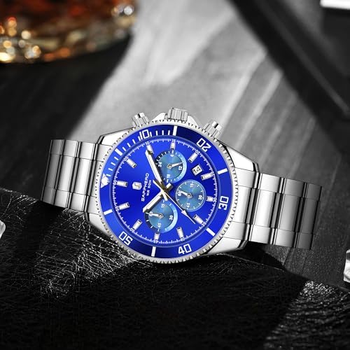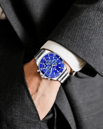 Sponsored Ad - Mens Watches Analog Quartz Chronograph Stainless Steel Watches for Men 50M Waterproof Men's Wrist Watches with Calendar Luxury Business Work Casual Watch Elegant Gifts for Men