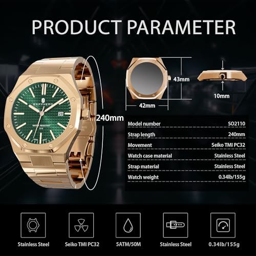 Sponsored Ad - Watches Men Octagonal Stainless Steel Waterproof Analog Japanese Quartz Wrist Watch Date Classic Business Luxury Watches for Men Elegant Gifts