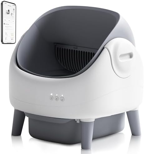 Sponsored Ad - Open-Top Self Cleaning Litter Box, Automatic Cat Litter Box with APP Control, Dual Safety Sensors, Includes Trash Bags, Grey-White