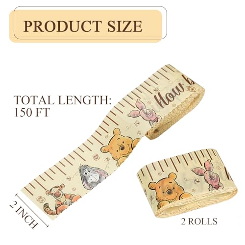 2 Rolls Bear Baby Shower Measuring Tape, Bear How Big is Mommys Belly Tape, Measure Baby Bump Tape, Tummy Measure Belly Game for Baby Shower Party, Pooh Party Decorations Supplies, 2 Inch x 150 Feet