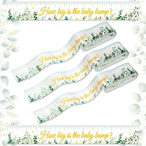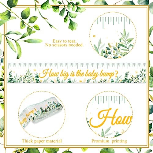 3 Rolls Baby Shower Measure Belly Game Baby Shower Games How Big Is Bump Belly Measuring Tape for Gender Reveal Games Party Supplies, 2 Inch x 115 Ft(Leaves Style)