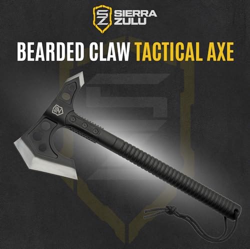 Sponsored Ad - Sierra Zulu Camping Axe - Tactical Survival Hatchet with Bearded Axe Head, Nylon Sheath & Glass Fiber Handle - Full Tang Outdoor Bushcraft Tool for Camping, Hiking, and Chopping Tasks