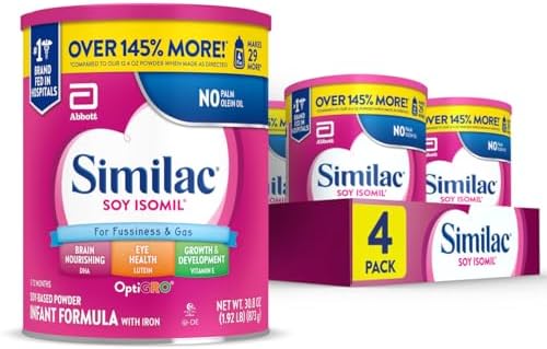 Soy Isomil Infant Formula, for Fussiness & Gas, Plant-Based Protein, Infant Formula Powder, 30.8-oz Value Can, Pack of 4