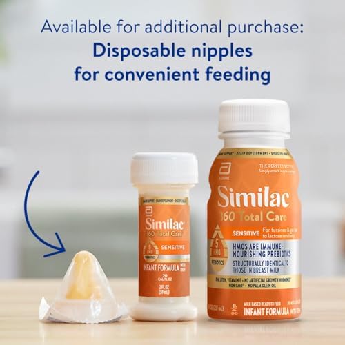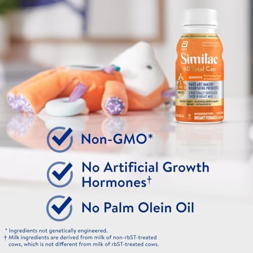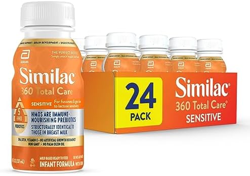 Similac 360 Total Care Sensitive Infant Formula for Fussiness & Gas Due to Lactose Sensitivity, Has 5 HMO Prebiotics, Baby Formula, Ready to Feed, 8-fl-oz Bottle, Pack of 24