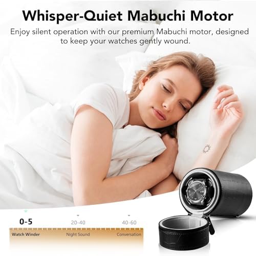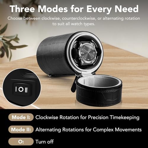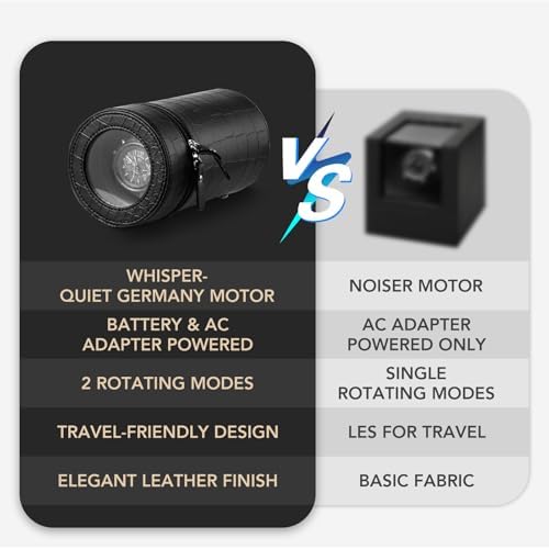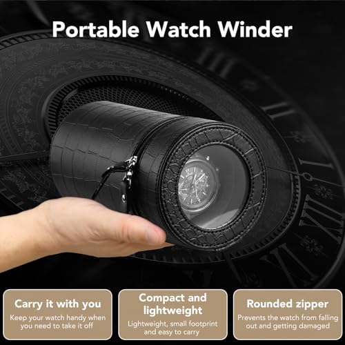 Single Watch Winder for Automatic Watches – Silent Motor, Battery and AC Adapter Powered, 2 Rotating Modes, Portable Watch Winders with Acrylic Window – Automatic Watch Winder Box for Men & Women