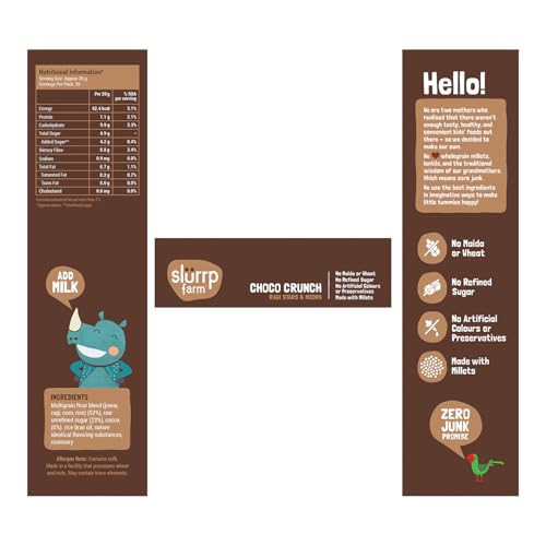 Slurrp Farm Choco Crunch Ragi Cereal | Crunchy Chocolate Breakfast with Stars & Moons | No Maida or Refined Sugar | Made with Millets | Kids Snack & Cereal | 14.11 Oz (400g)