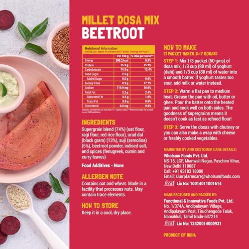 Slurrp Farm Millet Dosa Mix – Beetroot & Spinach | Wholesome Breakfast for Kids & Adults | Zero Maida, No Artificial Colors | Ready to Cook | Clean & Nutritious | 5.29 Oz (Pack of 2)