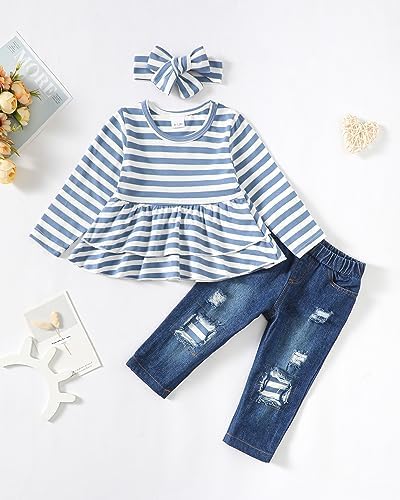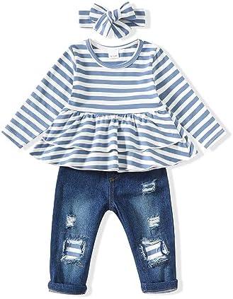 Baby Girl Clothes Toddler Girls Winter Outfits Infant Clothing Ruffle Top Denim Pants Jeans Cute Fall Outfit Set