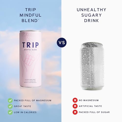 Trip Mindful Blend, Lightly Sparkling Adaptogen Seltzer, Mocktail w/ 120mg Magnesium Citrate with Ashwagandha, Lions Mane & L Theanine, No Added Sugar, Vegan, Original Variety Pack, 12 Oz, 12Pk