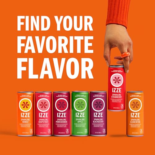 IZZE Sparkling Juice Beverage Blend, Sunset Variety Pack, Clementine, Peach, Cherry Lime, Pomegranate, No Sugar Added, 8.4 Fl Oz (Pack of 24)