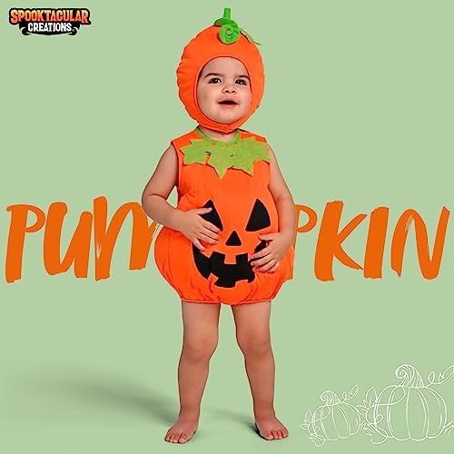 Spooktacular Creations Halloween Baby Pumpkin Costume, Pumpkin Costume Toddler Outfit with Hood for Halloween Dress up party