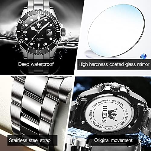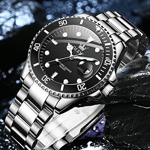 Men Watch,Big Dial Watches for Men Stainless Steel Watch with Day Waterproof Analog Quartz Watches for Man Classic Business Wristwatch Luxury Luminous Round for Men Rotatable Bezel Watch