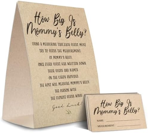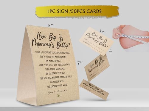 Kraft Paper How Big is Mommy's Belly Sign,Guess Mommy's Belly Size Game Kit (1 Standing Sign + 50 Guessing Cards), Baby Showers Decorations-NPZHB03