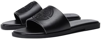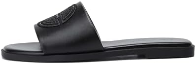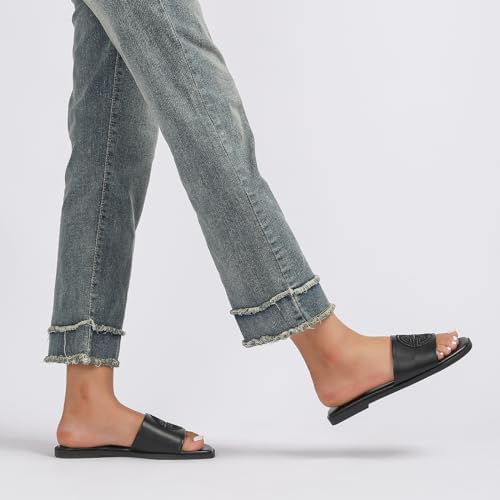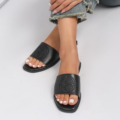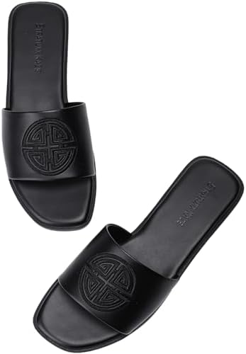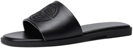 Sponsored Ad - Womens Flat Sandals Dressy Summer Slide with Memory Foam Comfortable Cute Leather Black Sandals for Women