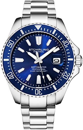 Men's Watches Pro Dive Watch Sports Watch with 42 MM Case Blue Dial Stainless Steel Silver Bracelet Diving Watch for Men