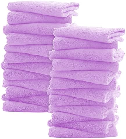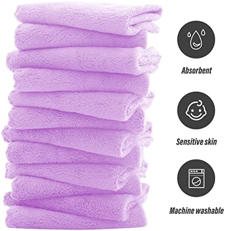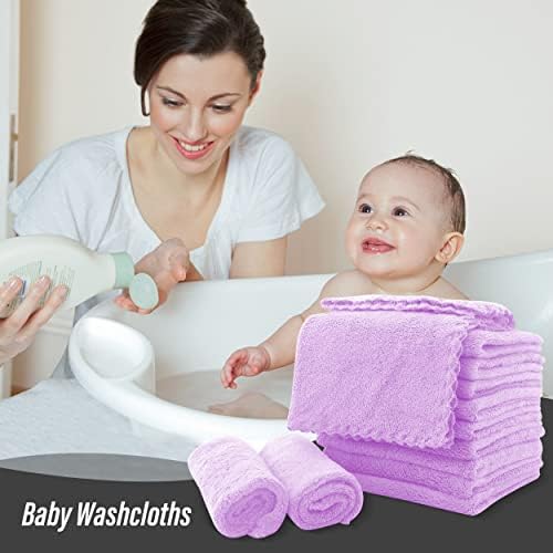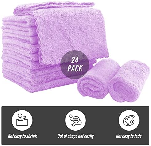 Sunny zzzZZ Ultra Soft 24 Pack Baby Washcloths - 10x10 Inches - Coral Fleece Extra Absorbent Wash Clothes for Babies, Infants and Toddlers - Sensitive Skin and Newborn - Ideal Baby - Violet Purple