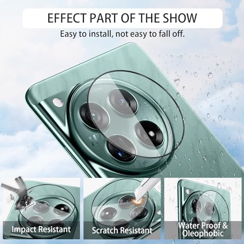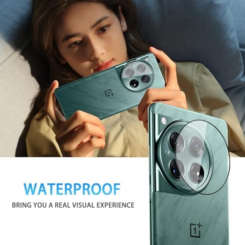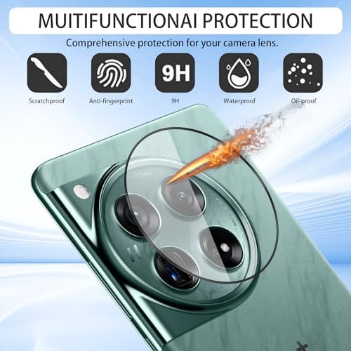 2-Pack for Oneplus 12 Camera Lens Protector, [ Not Affect Flash ] Full Coverage 9H Hardness Tempered Glass Camera Lens Protective Film + Auto-alignment Installation Tool