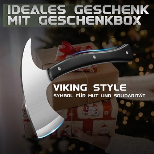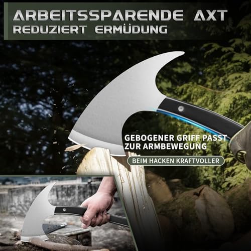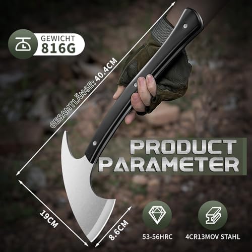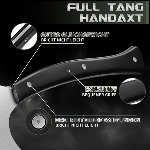 Full Tang Survival Camping Axe with Wood Ergonomic Handle and Nylon Sheath Sheath – High Carbon Stainless Steel, Multi-Tool for Outdoor, Hunting, Emergency (Big)