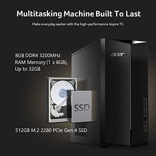 Aspire TC-1780-UA92 Desktop | 13th Gen Intel Core i5-13400 Processor | 8GB 3200MHz DDR4 | 512GB M.2 SSD | SD Card Reader | Intel Wi-Fi 6E AX211 | Windows 11 Home, Black