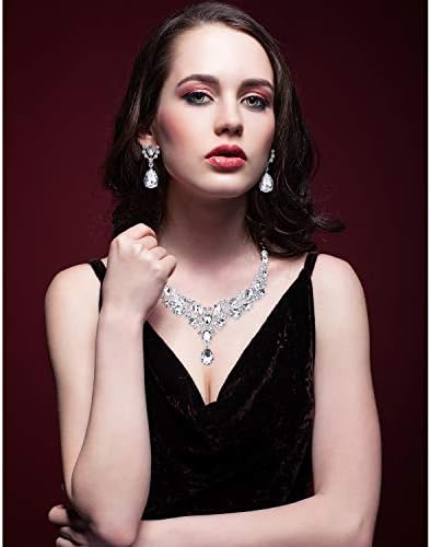 Hicarer Bridal Teardrop Cluster Crystal Jewelry Set for Women Necklace Earrings Wedding