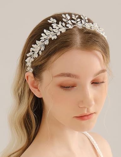 Teyglen Crystal Bride Wedding Hair Vine Bridal Pink Rhinestone Headband Sparkly Crystal Headpiece Wedding Hair Accessories for Women Bridesmaid Party Prom(Pink)