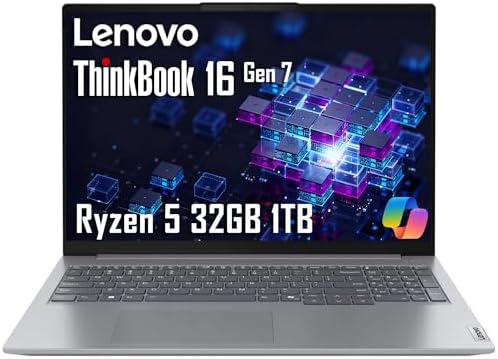 Lenovo ThinkBook 16 Gen 7 Business Laptop (16" FHD+ Anti-Glare, AMD Ryzen 5 7533HS (> i7-1255U), 32GB DDR5 RAM, 1TB SSD), Fingerprint Reader, Webcam, Ethernet, Wi-Fi 6, Win 11 Pro w/ Copilot, Grey